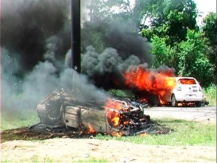 Dos quatro carros incendiados, dois eram do governo do Estado, um do governo Federal e outro, uma caminhonete, pertencente a Secretaria de Saúde do município de Pau Brasil, a 551 km da capital baiana. Segundo informações do Blog do Pimenta, o carro da prefeitura de Pau Brasil transportava dois pataxós adultos e duas crianças de 8 e 10 anos. O motorista do veículo teria tentado furar o bloqueio na rodovia alegando que tinha uma pessoa doente no carro.