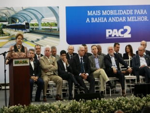"A primeira é com a Prefeitura de Salvador, que nós vamos realizar obras para melhorar o transporte coletivo aqui na Região Metropolitana, implantando o BRT Lapa-Iguatemi. São 13 quilômetros bem na região populosa, necessária para o transporte, e vamos aportar R$ 600 milhões: uma parte com o dinheiro do orçamento da União e a outra parte assegurando o financiamento", afirmou a presidente.